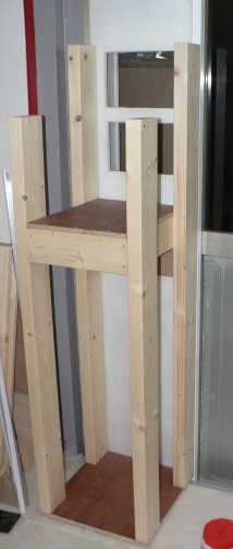 台は、2×4材の柱4つで上部の棚を支えています。