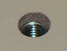 爪つきナット単体(左)と、挿入穴(右)です。 トリマで凹みを作ってます。