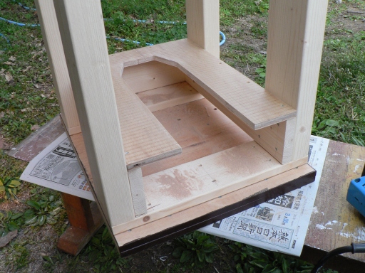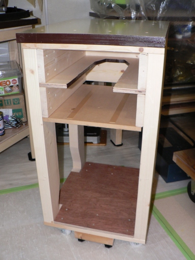 台の足 及び棚板を組み立てるところの写真は、うっかり撮っていませんでした。 (^^;