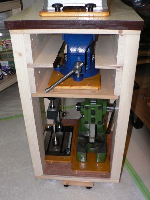 それと出来上がってから、この台に万力を収納する方法を思いつきました。