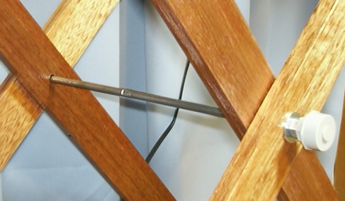 | 材料はラワンの角材です。 表面は油性ニスを塗っています。 支点部分のシャフト(金属棒)ですが、これがちょうどいいものがホームセンターで見つかりました。 これは、本来コンクリートを流し込むコンパネ(ベニアの木枠)を締め付ける用途のもののようです。 長さが何種類があったので使えそうな長さのものを買ってきました。 |