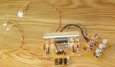 | これが、このスピーカーの 中央部に格納するアンプ基板 です。 もともと、スピーカーと対に なっていたアンプです。 ACアダプターの電源で 動作します。 パソコンのマルチメディア用 なのでこれで十分です。 |
